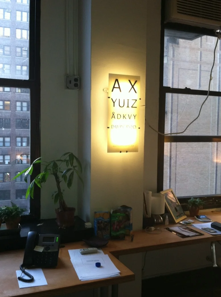 And here is the Ikea light. In this picture I took in the office, it’s hard to see all the letters on the light but they show up clearly when you’re standing in the room. (and you can see them on the Ikea site I linked to) It’s the Gyllen Wall Lamp, and it’s $39.99. Unfortunately it is not sold on the website, but you can see if it is available at a store near you. I think it’s a cool light, great for an office, could be great for a dorm room as well.